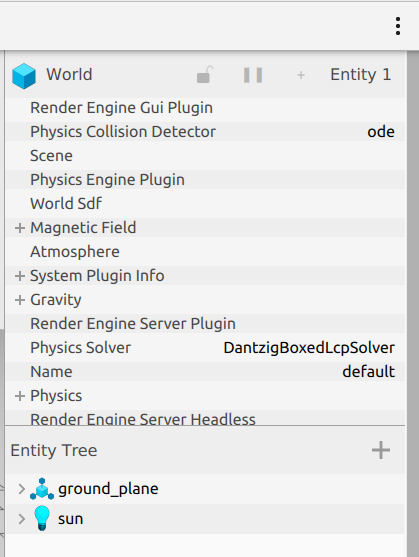 If you look closely, we can see that currently our world has already one model in it. Which is the ground plane.